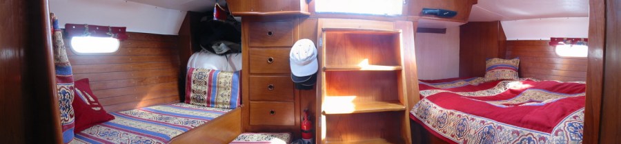 De achterhut, onze slaaphut vanaf 1999-2006 en na nieuwe bekleding heeft het in 2006 een hele nieuwe uitstraling gekregen. (klik op fotos voor ware grootte)