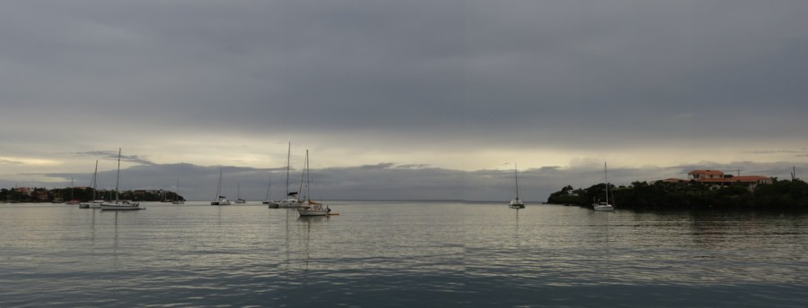 We have been anchored here for nearly 3 months during Hurricane season 2016 and liked this bay very much. There are many possibilities to go by dinghy to the other bays and to Hog Island for a swim or BBQ on the beach. 2 marinas (full in hurricane season), 1 yard, a few restaurants, repair shop, a little supermarket, and the famous Nimrods Rum shop at the Woburn dock. Woburn’ concrete dock is the perfect place to park the dinghy (lock it) and go to Saint George with bus number 2. The bus stop is in front of Nimrods. Hop on the bus from whatever side he comes, bus stop is in a loop. The other possibility is, leave the dinghy at Whisper Cove Marina of Clarkes Court Boatyard and Marina to join the weekly shopping bus to town.